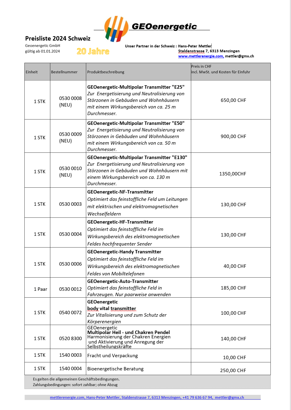 Damit unsere Schweizer Interessenten wissen was an Transport und Einfuhrkosten anfallen, haben wir die folgende Preisliste für Sie zusammengestellt.